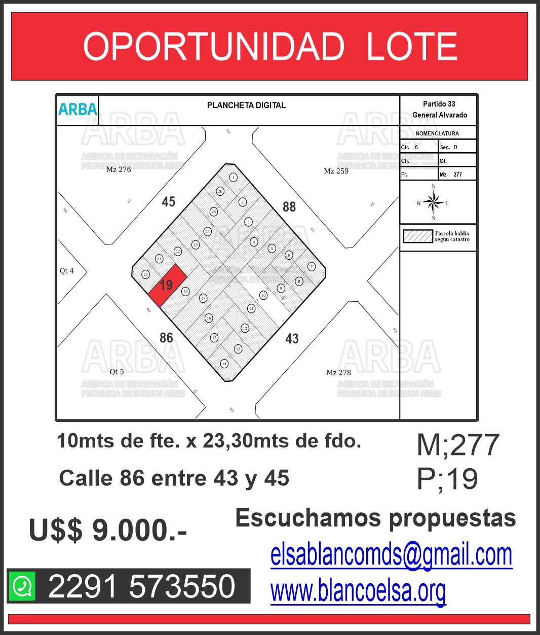 LOTE EN MAR DEL SUR ZONA CAMPO. Se ofrece a la venta, lote de 10mts x 23,30mts, con un entorno arbolado. listo para escriturar. ESCUCHAMOS TU PROPUESTA!!!. #LT66
